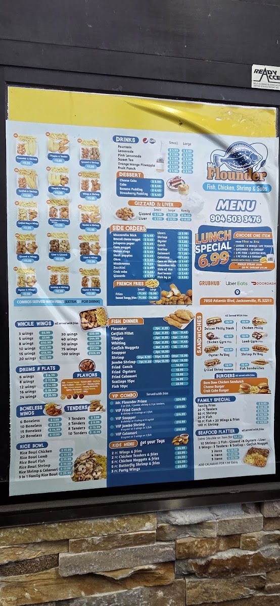 Mr Flounder Fish Chicken Shrimp is a standout destination in Jacksonville for those craving freshly fried seafood and chicken. Located on Atlantic Blvd, this takeout-only spot thrives on delivering generous portions of crispy fish, shrimp, and chicken, all cooked to golden perfection. The menu is a treasure trove featuring seafood platters where you can mix and match wings, gizzards, oysters, scallops, and more — served with classic fries, creating a satisfying and hearty meal.